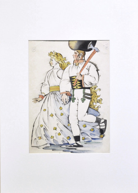 technika — akvarel a preokresba tušom na papieri